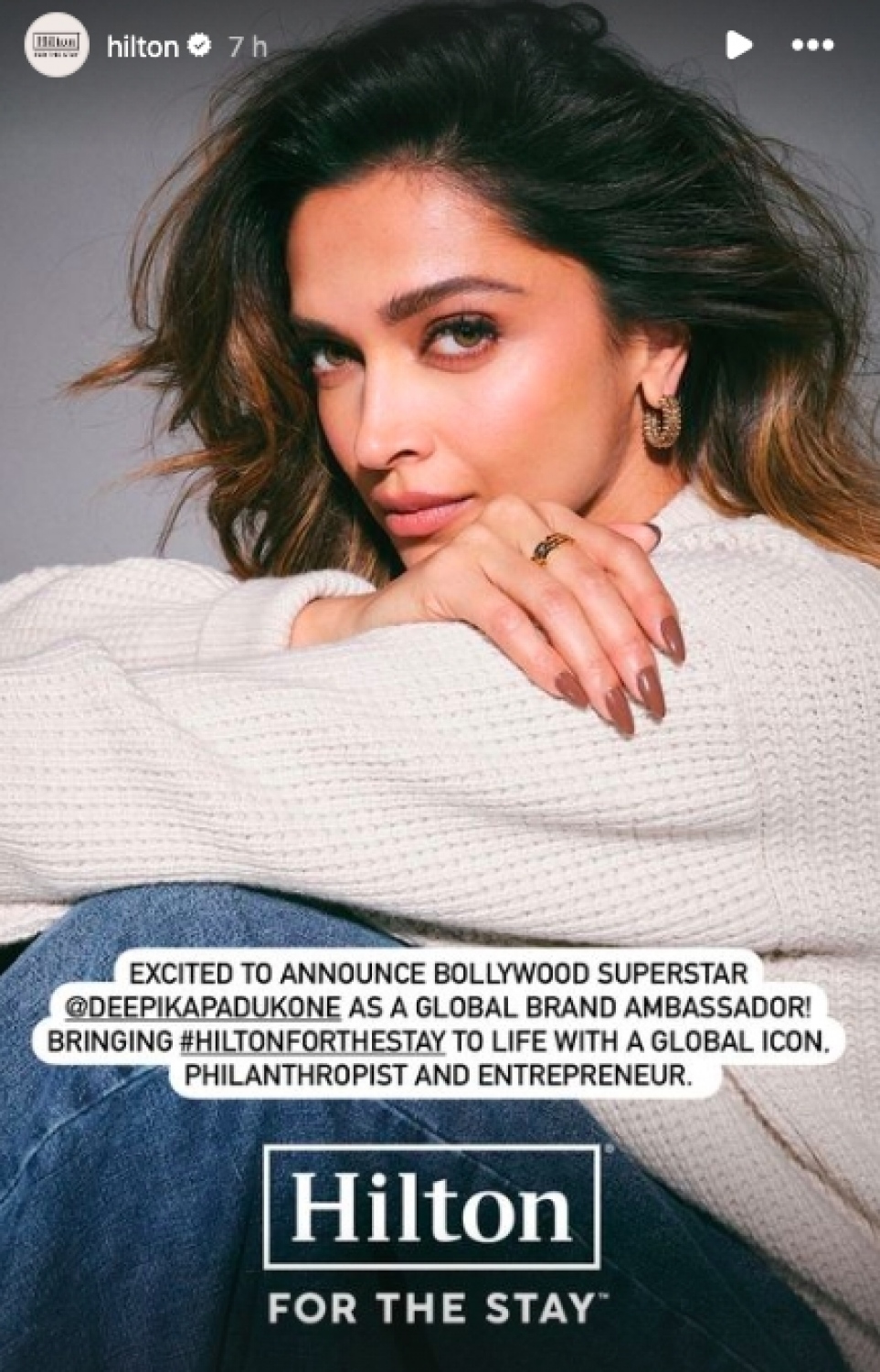 ހިލްޓަންގެ ރަސްމީ އިންސްޓަގްރާމް ޕޭޖުގައި ކުރި ޕޯސްޓެއްގައި ވަނީ އެ ކުންފުނީގެ ބްރޭންޑް އެމްބަސެޑަރަކަށް ދީޕިކާ ހަމަޖެއްސިކަން އިއުލާންކޮށްފަ އެވެ.