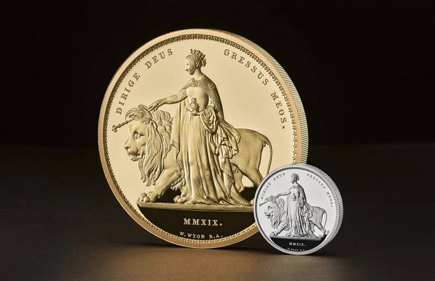 އެ ފައިސާ ފޮތީ ތައްޔާރުކޮށްފައި ވަނީ ވިލިއަމްގެ ފަރުމާތަކުން ފެންނަ އަންހެނެއް (އުނާ) އާއި ސިންގާގެ ސިފަ ހިމަނައިގެންނެވެ. އެ ސިފަތަައް ހިނަމައިގެން އެންމެ ފުރަތަމަ ނެރުނު ފައިސާފޮއްޗަކީ ކްއީން ވިކްޓޯރިއާގެ ހަނދާނުގައި 1839 ގައި ނެރުނު 5 ޕައުންޑްގެ ރަން ފައިސާފޮއްޗެވެ.