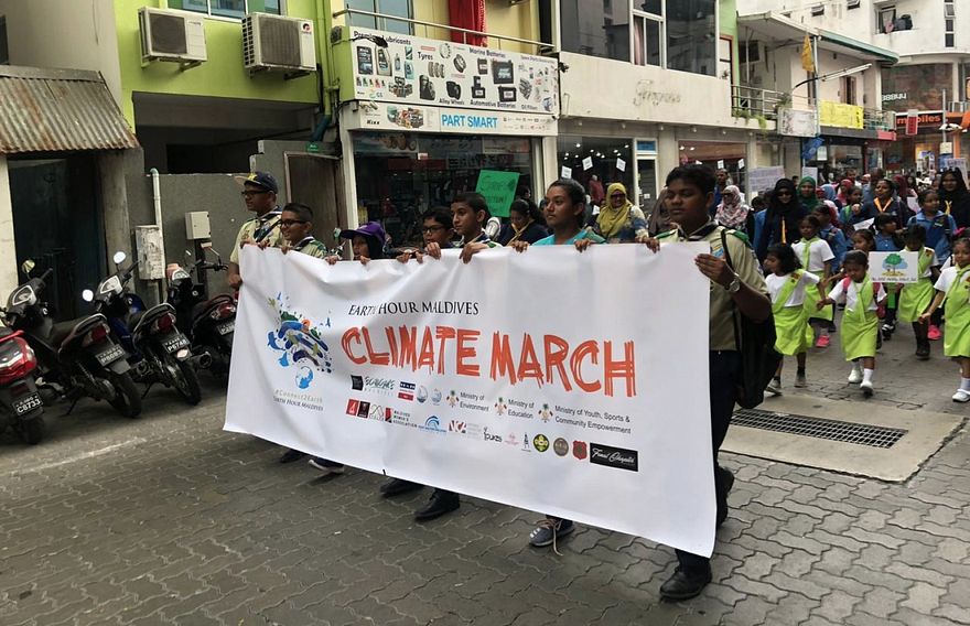 ދުނިޔޭގެ މޫސުމަށް އަންނަ ބަދަލުތަކާ ދެކޮޅަށް އަޑުއުފުލަން މި ފަހުގެ ތާރީޚުގައި ރާއްޖޭގައި ނުބާއްވާ ވަރުގެ ބޮޑު ހިނގާލުމެއް މާލޭގައި އިއްޔެ، "ކްލައިމެޓް މާޗު"ގެ ނަމުގައި ބާއްވައިފި އެވެ.