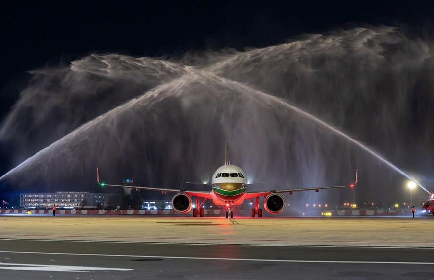 އާ ޓާމިނަލަށް ކައިރި ކުރި ގަލްފް އެއާގެ ފުރަތަމަ މަތިންދާބޯޓު، ޖީއެފް-145 އަށް މަރުހަބާ ކިއުމުގެ ގޮތުން އެ މަތިންދާބޯޓަށް ވޯޓާ ސެލިއުޓެއް އެރުވި އެވެ. އަދި އެ ފްލައިޓުން ރާއްޖެ އައި ފަސިންޖަރުންނަށް ސަގާފީ ހަރަކާތްތަކާއެކު ހޫނު މަރުހަބާއެއް ކި އެވެ.