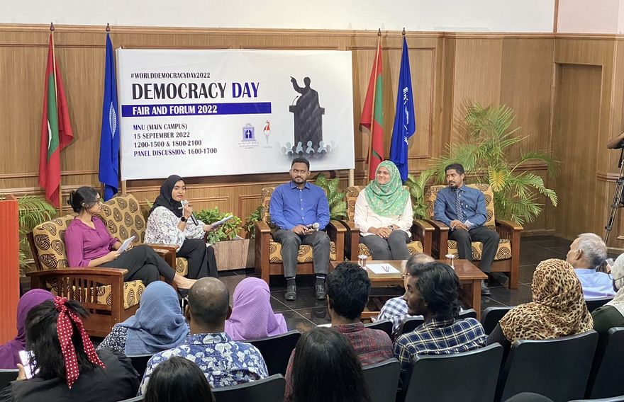 ބައިނަލްއަގްވާމީ ޑިމޮކްރަސީ ދުވަހާ ގުޅުވައިގެން އިއްޔެ ކުރިއަށް ދިޔަ "ޑިމޮކްރަސީ ޑޭ ފެސްޓިވަލް" އިންތިޒާމްކޮށްފައި ވަނީ އެމްއެންޔޫ އިން ޕޮލިޓިކަލް ސައިންސް އަދި އިންޓަނޭޝަނަލް ރިލޭޝަންސް ކިޔަވަމުން އަންނަ ދަރިވަރުންނެވެ.