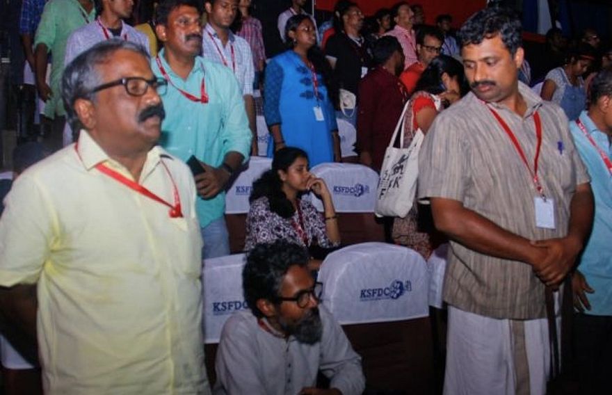 ކެރެލާ ސްޓޭޓުގެ ޓްރިވެންޑްރަމްގައި އޮތް އިންޓަނޭޝަނަލް ފިލްމު ފެސްޓިވަލުގައި ގައުމީ ސަލާމަށް އިހުތިރާމް ކުޑަކުރި މީހުން ހައްޔަރުކުރި ނަމަވެސް ފަހުން ވަނީ އެ މީހުން ދޫކޮށްލައިފަ އެވެ. ނަމަވެސް ގައުމީ ސަލާމަށް އިހުތިރާމް ކުޑަކުރުމާއި އެހެން ބަޔަކަށް އުނދަގޫވާ ގޮތަށް އަމަލުކުރުމުގެ ދައުވާ އެ މީހުންގެ މައްޗަށް އުފުލާނެ އެވެ.