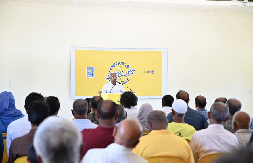 "އުފާވެރި ދިރިއުޅުމެއް ލިބެންޖެހޭ، ދިވެހި ކޮންމެ ފަރުދަކީ އުފާވެރިކަމާ އެކު ރާއްޖޭގައި އުޅެވޭ މީހަކަށް ވާން އެބަޖެހޭ. އަސާސީ ހިދުމަތްތަކުން މަހުރޫމްވެގެން ތިބެ ހަމަޖެހޭ އުފާވެރި ދިރިއުޅުމެއް ނުހޯދޭނެ. އެއްވެސް ރަށެއް ތަފާތު ކުރުމެއް ނެތި މި އަންނަނީ އަސާސީ ހިދުމަތްތައް ރާއްޖޭގެ ހުރިހާ ރައްޔިތުންނަށް ފޯރުކޮށްދެމުން،" ރައީސް ވިދާޅުވި އެވެ.