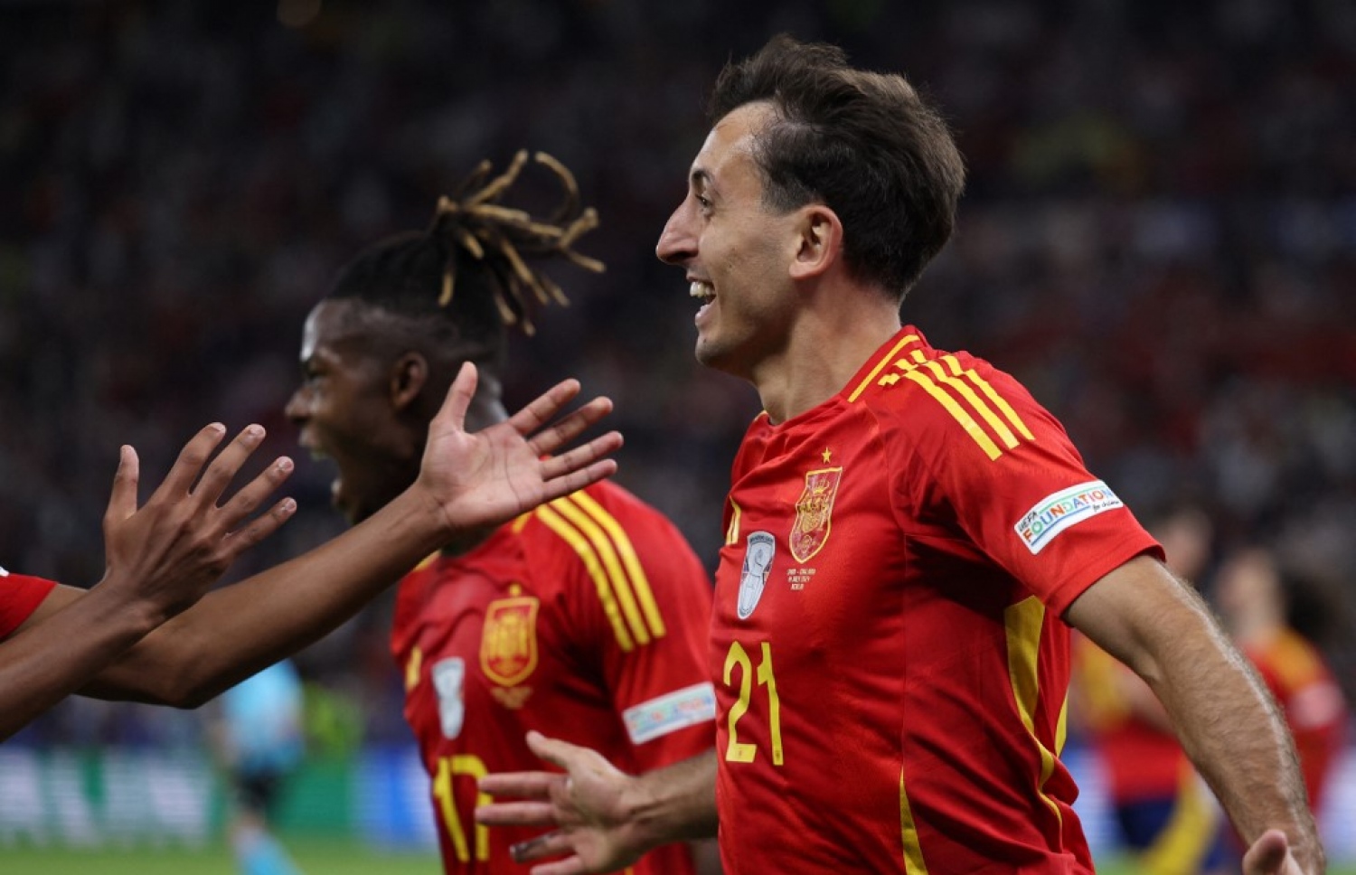 އިންގްލެންޑުން ނަތީޖާ ހަމަހަމަ ކުރުމުން، އެ ޓީމަށް ބޮޑު ހިތްވަރެއް ލިބި މެޗު ޑެމިނޭޓް ކުރާނެ ކަމަށް ބެލެވުނެވެ. އެކަމަކު ސްޕެއިނުން އެ ޓީމުގެ ގޭމް ދެމެހެއްޓުމަށް މަސައްކަތް ކުރި އެވެ. ކެޕްޓަން އަލްވާރޯ މޮރާޓާގެ ބަދަލުގައި ކުޅެން ނުކުތް މިކެލް އޮޔާޒަބަލްގެ ގޯލުން ސްޕެއިން އަނެއްކާ ވެސް ލީޑް ނެގި އެވެ.