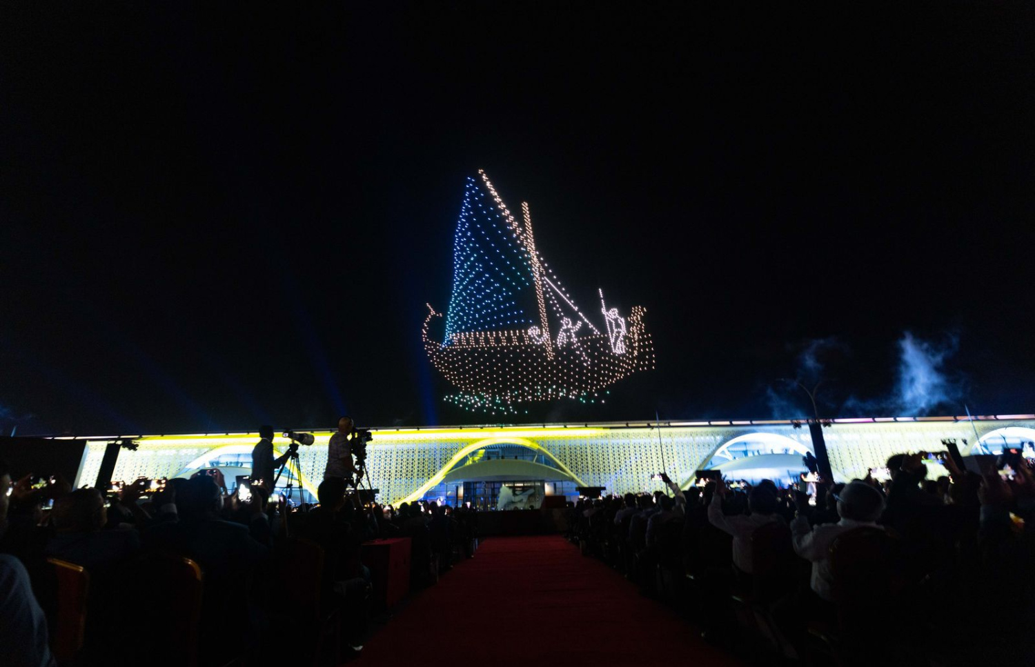 ޑްރޯންތަކުން އެކި ވައްތަރުގެ މަތިންދާބޯޓުތައް ސިފަކޮށްދީ، ވެލާނާ އެއާޕޯޓުގެ ދިގު ތާރީހު ދައްކަމުން ދިޔައިރު މުޅި ޓާމިނަލް އެކި ކުލަތަކުން ދިއްލެމުން އަދި ޑްރޯން ޝޯއާ ގުޅޭ މިއުޒިކުން އިތުރަށް ފުރިހަމަކޮށްލި އެވެ.