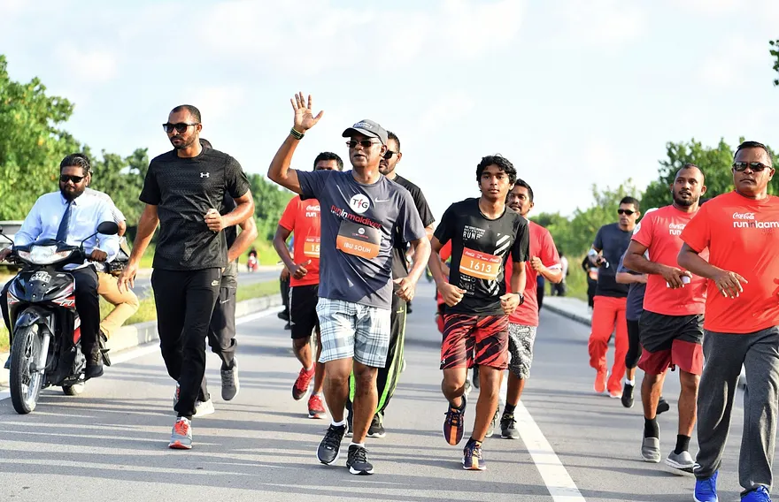 ރައީސް އިބްރާހިމް މުހައްމަދު ސޯލިހާއި އެމަނިކުފާނުގެ އަނބިކަނބަލުން ފަޒުނާ އަހުމަދު ޓޯޓަލް ފިޓްނަސް ގްރޫޕް (ޓީއެފްޖީ) ފަސް ކިލޯމީޓަރު ދުވުމުގައި މިއަދު ބައިވެރިވެވަޑައިގެންފި އެވެ.