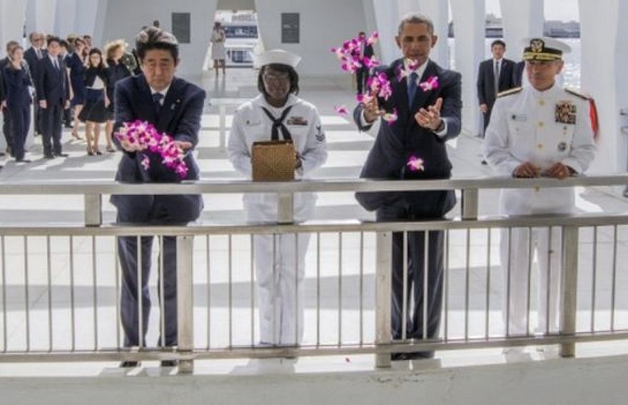 އަބޭއާ އެކު ރައީސް ބަރަކް އޮބާމާ ވެސް ޕާލް ހާބަރަށް ވަޑައިގެންނެވި އެވެ. މިއީ ދެ ގައުމުގެ ވެރިން ޕާލް ހާބަރަށް ވަޑައިގެންނެވި ފުރަތަމަ ފަހަރެވެ. ދެ ލީޑަރުން ވެސް ވަނީ ހަމަލާގައި މަރުވި މީހުންގެ ހަނދާނުގައި މާބޮނޑިއެއް ބާއްވައިފަ އެވެ.