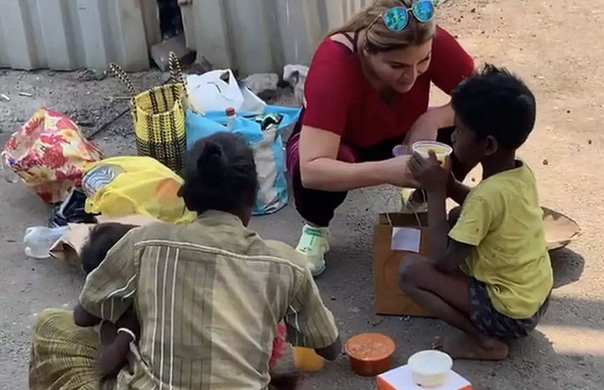 ބޮލީވުޑްގެ މަޝްހޫރު ނެށުންތެރިޔާ ރާކީ ސާވަންތު، މަގުމަތީގައި އުޅޭ އާއިލާއަކަށް ކާންދޭ ވީޑިއޯއެއް އާންމުވުމުން ގިނަ ބަޔަކު އޭނާ އަށް ތައުރީފުކޮށްފި އެވެ.