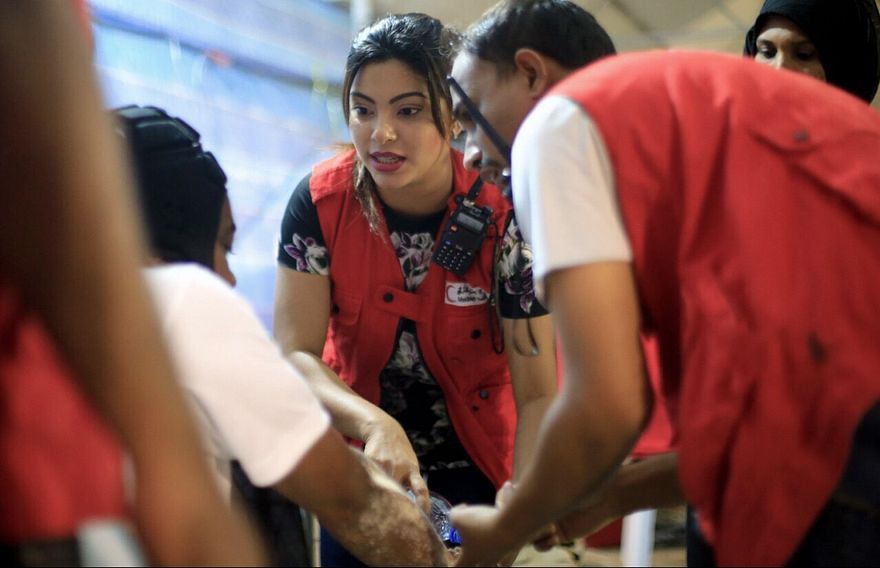 އެމްއާރުސީގެ ވޮލަންޓިއަރަކު ފަސްޓް އެއިޑް ތަމްރީން ދެނީ. ފޮޓޯ: އެމްއާރުސީ
