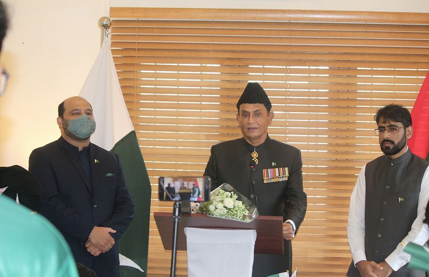 ރާއްޖޭގައި ދިރިއުޅޭ ޕާކިސްތާނުގެ ބައެއް މީހުން ވެސް ބައިވެރިވި ހަފުލާގައި ސަފީރު ވަނީ ޕާކިސްތާނުގެ ދިފާއުގައި ޝަހީދުވި މީހުންގެ ހަނދާންތައް އާކުރައްވައި، އެއީ މިނިވަން، މުސްތަގިއްލު ގައުމަކަށް ހެދުމަށްޓަކައި، ޕާކިސްތާނުގެ ބާނީ މުހައްމަދު އަލީ ޖިނާހް ކުރެއްވި މަސައްކަތްތައް ފާހަގަކުރައްވައިފަ އެވެ.
