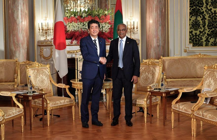 ޖަޕާނުގެ އާ އެމްޕެރާ ތަހުތަށް އިސްވެވަޑައިގެންނެވުމުގެ ރަސްމިއްޔާތުގައި ބައިވެރިވެވަޑައިގެންނެވުމަށް އެ ގައުމަށް ކުރައްވަމުން ގެންދަވާ ރަސްމީ ދަތުރުފުޅުގައި ރައީސް އިބްރާހީމް މުހައްމަދު ސޯލިހް ޖަޕާނުގެ ބޮޑުވަޒީރު ޝިންޒޯ އަބޭއާ މިއަދު ބައްދަލުކުރައްވައިިފި އެވެ.