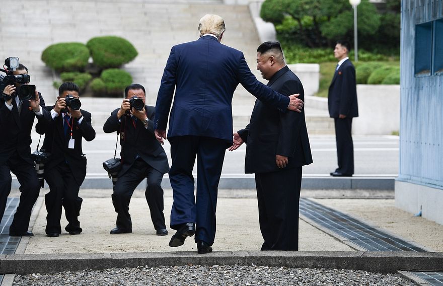 ޓްރަމްޕް މިއަދު ވަނީ ދެ ގައުމު ގުޅޭ ޑިމިލިޓަރައިޒްޑް ޒޯން އަށް ވަޑައިގެން ނޯތު ކޮރެއާގެ ލީޑަރު ކިމް ޖޮންއާ ބައްދަލު ކުރައްވައިފަ އެވެ. ދެ ގައުމުގެ ބޯޑަރުގައި ހުންނެވުމަށް ފަހު ޓްރަމްޕް ވަނީ ނޯތު ކޮރެއާގެ ސަރަހައްދަށް ހިންގަވާފައި ކުޑަ ތަންކޮޅަކަށް ވަޑައިގެންފަ އެވެ. އޭގެ ފަހުން ބޯޑަރު ލައިނަށް ވަޑައިގެން ކިމްއާ އެކު ޓްރަމްޕް ވަނީ ސައުތު ކޮރެއާގެ ސަރަހައްދަށް ވެސް ވަޑައިގެންފަ އެވެ.